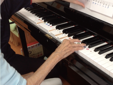 - へバーデン結節の為弾くことに抵抗のあったご利用者が、昔お琴で弾いた大好きな曲をピアノで弾いたことがきっかけで楽しくなり、「がんばらなくちゃ」と今では両手で頑張っていらっしゃいます。